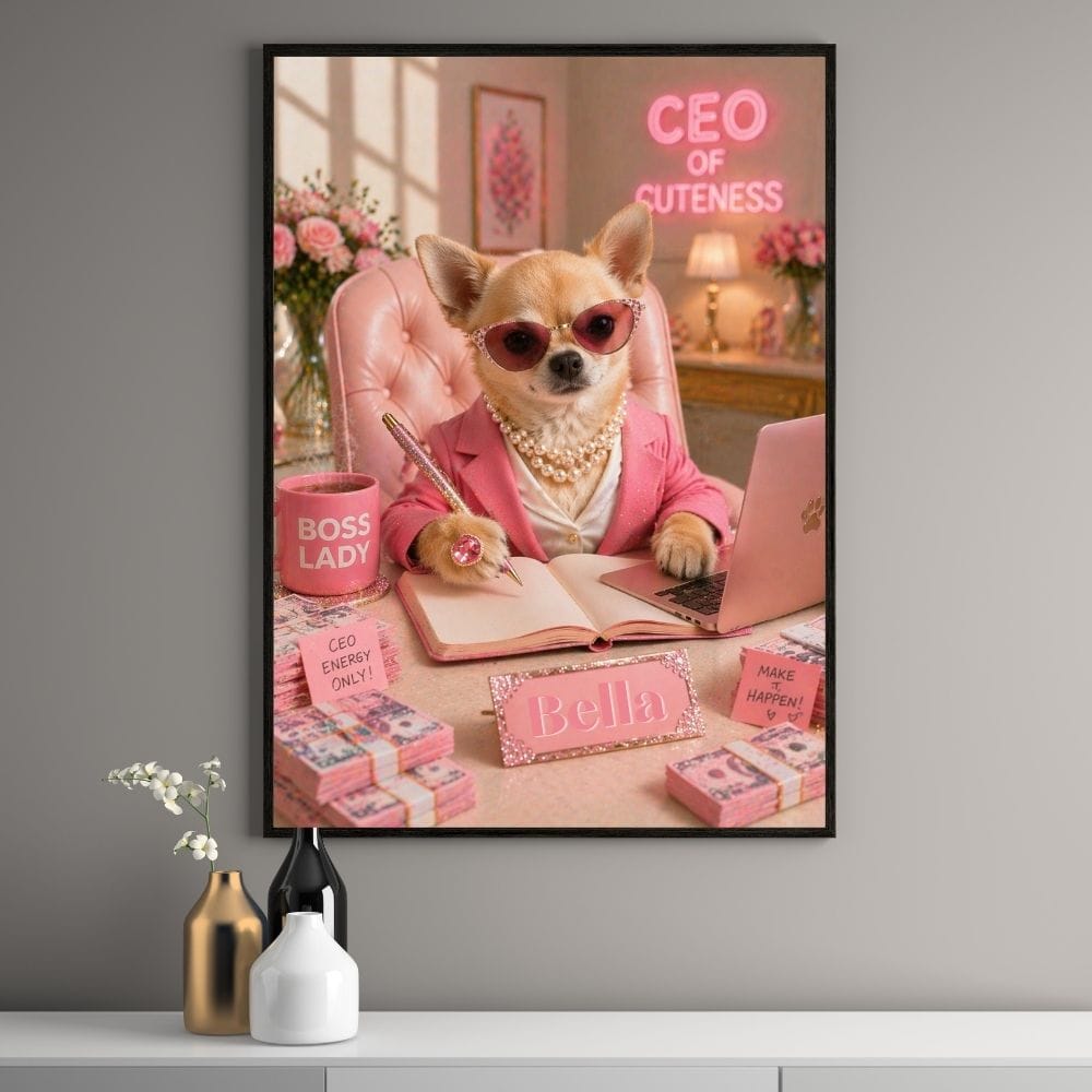 Pretvori svog ljubimca u jedinstven poster u „Boss“ stilu. Ovaj personalizovani foto ram savršen je za dekoraciju ili kao poklon za ljubitelje pasa.