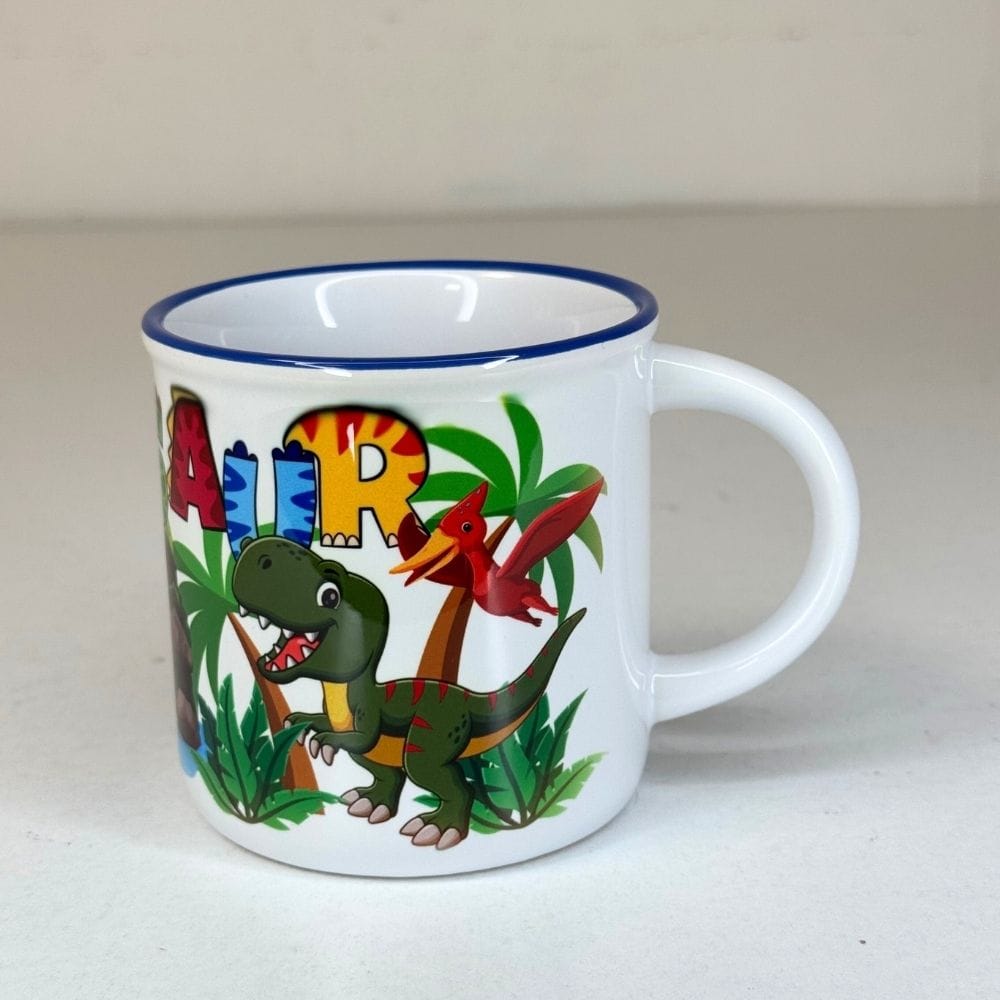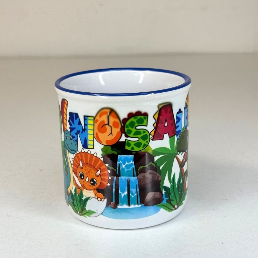 Lončić sa motivom dinosaura – veseo keramički lončić za male istraživače praistorije, uz ime po želji!